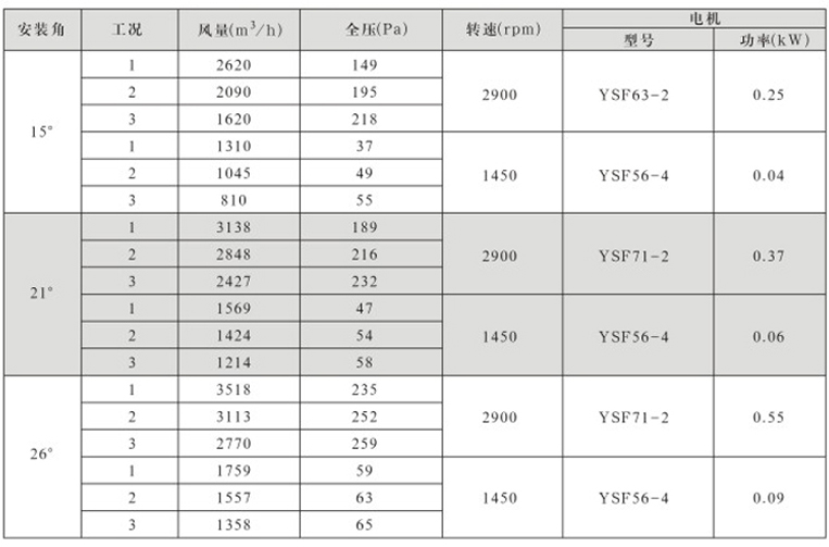 DTF(R)-3.15(6葉)系列地鐵、隧道軸流風機性能表