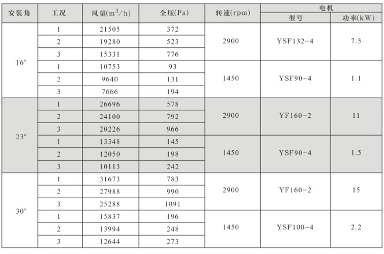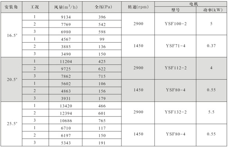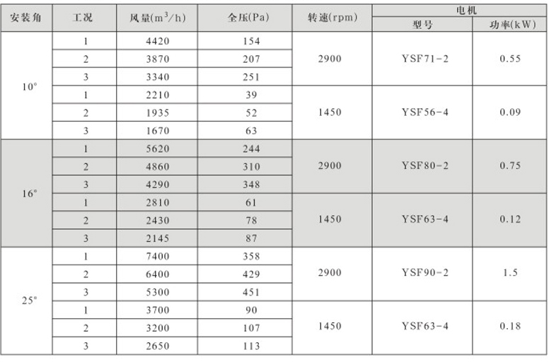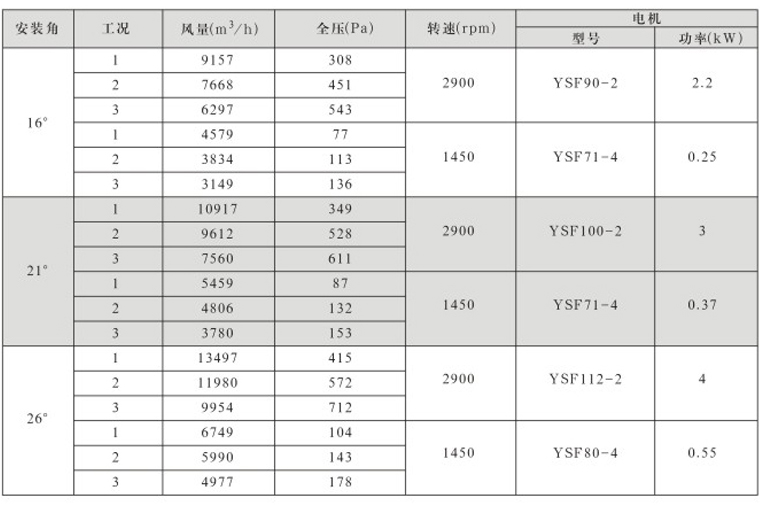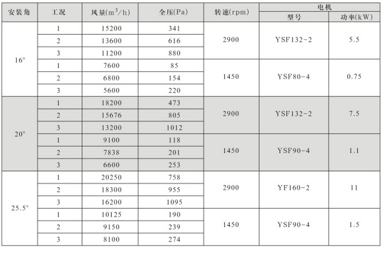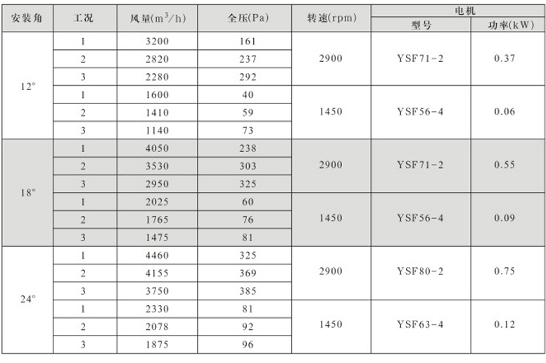 DTF(R)-4.5(6葉)系列地鐵、隧道軸流風機性能表